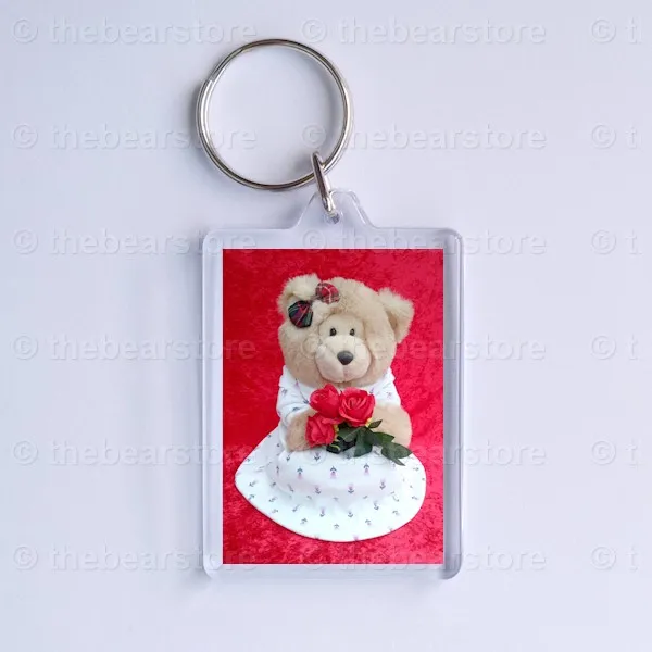 Keyring featuring Marther holding 3 red roses.