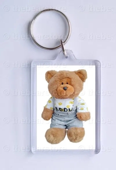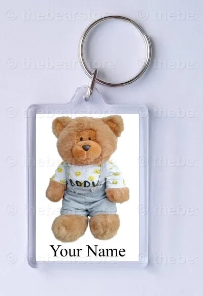 Keyring featuring Riley in his HAPPY T shirt and grey dungarees.