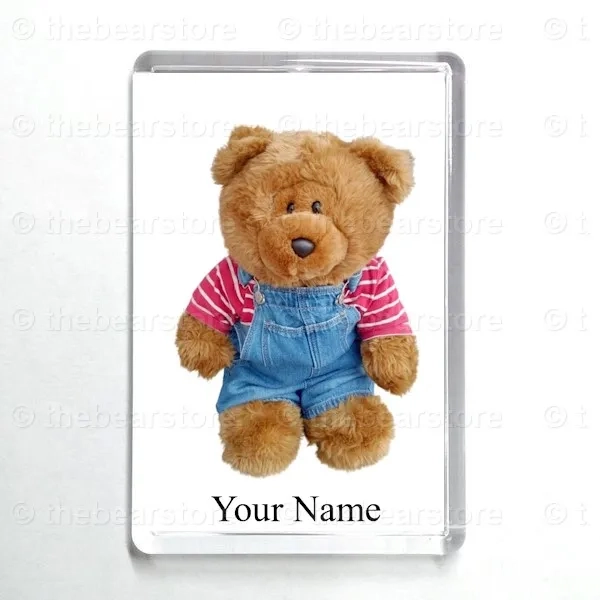 Oblong magnet featuring Douglas in his pirate stripe T shirt and denim dungarees.