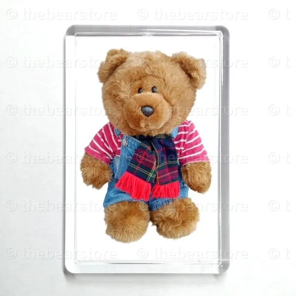 Oblong magnet featuring Douglas in his pirate stripe T shirt, denim dungarees and tartan scarf.
