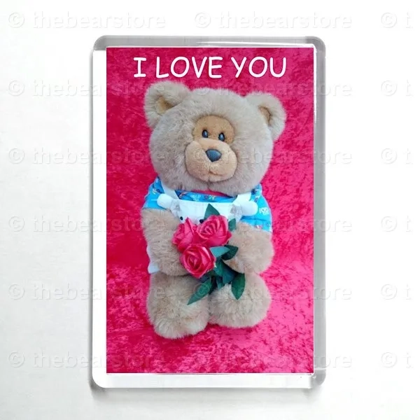 Oblong magnet featuring Roley holding 3 red roses.
