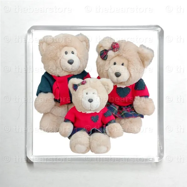 Square magnet featuring the TD Bear family - 'Preparing for Christmas' theme.