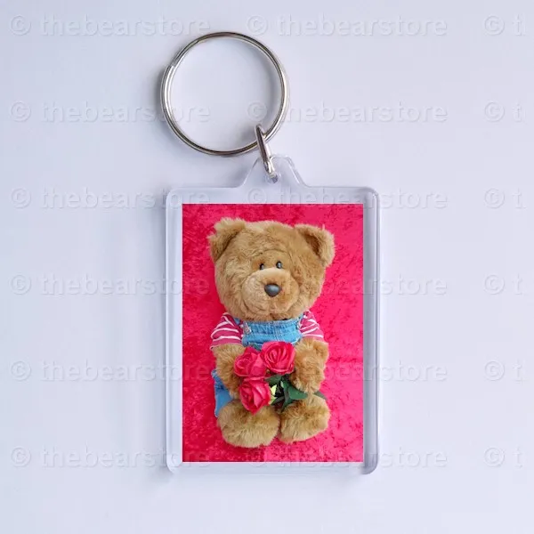 Keyring featuring Douglas holding 3 red roses.